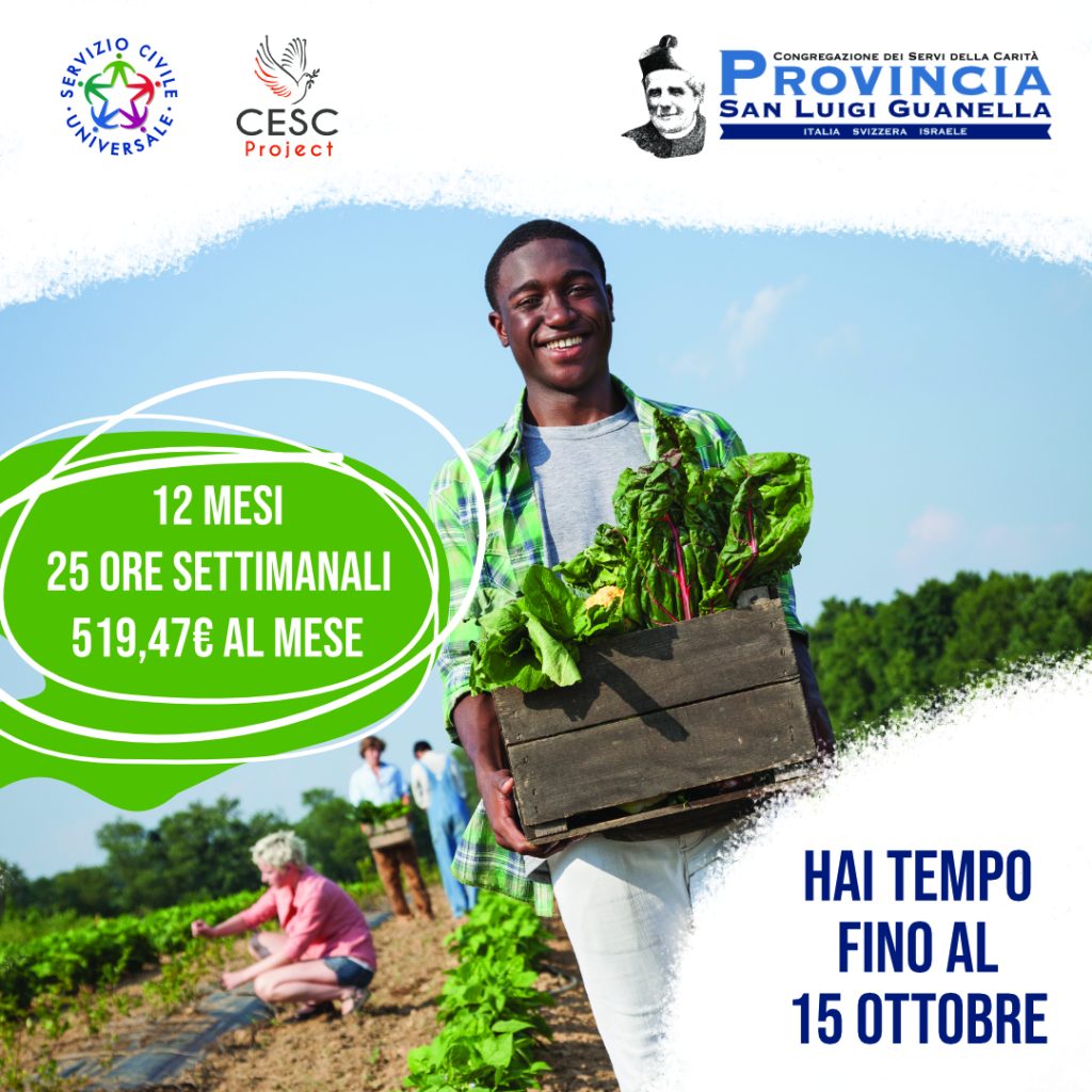 Le case guanelliane di Como-Lora, Genova, Cassago Brianza, Valmadrera, Gatteo e Bari offrono l’occasione di valorizzare i loro progetti di agricoltura sociale attraverso il coinvolgimento qualificato di giovani nel settore. La valenza inclusiva dei servizi socio-educativi, la trasmissione delle pratiche della cultura contadina nella cornice di un progetto di servizio civile di 12 mesi, che occuperà i ragazzi per 25 ore settimanali a fronte di un contributo di euro 519,47 mensili.