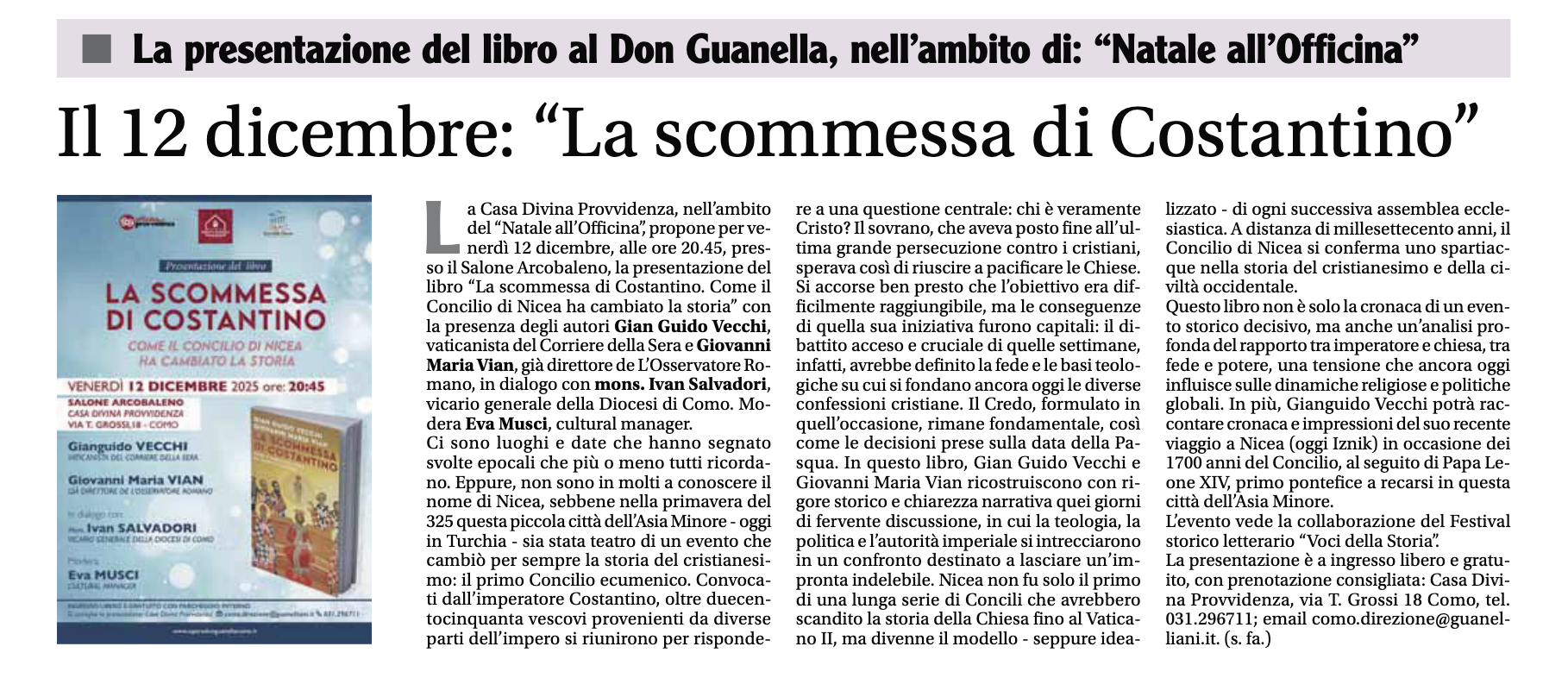 Il 12 dicembre: “La scommessa di Costantino”