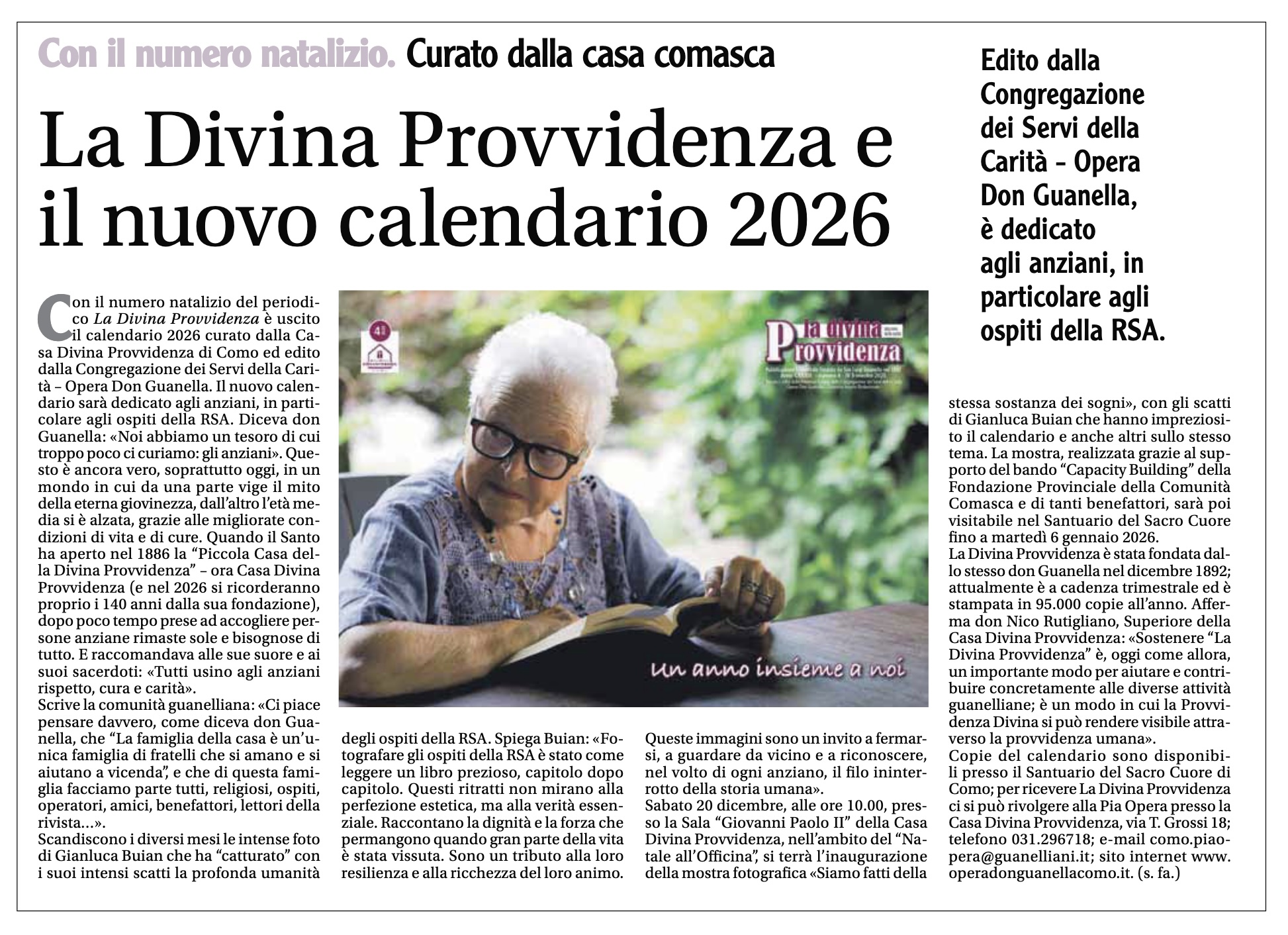 La Divina Provvidenza e il nuovo calendario 2026